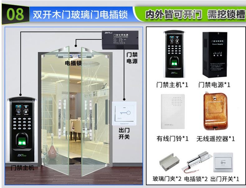 【單向內開】有框雙開玻璃門 需要添加2套電插鎖