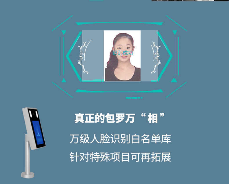該解決方案是應用人的面部基本特征來結束身份核對的以防止了人體跟機器的直接接觸。經過人臉數據信息注冊的顧客以后只要通過系統前系統高清攝像頭便會自動化捕捉即時面部圖像并將其與管理后臺界面數據高速比對比對經過便可放行。